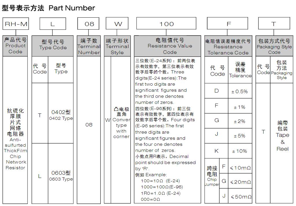 風華高科 抗硫化厚膜片式網(wǎng)絡(luò)電阻器型號命名規(guī)則: