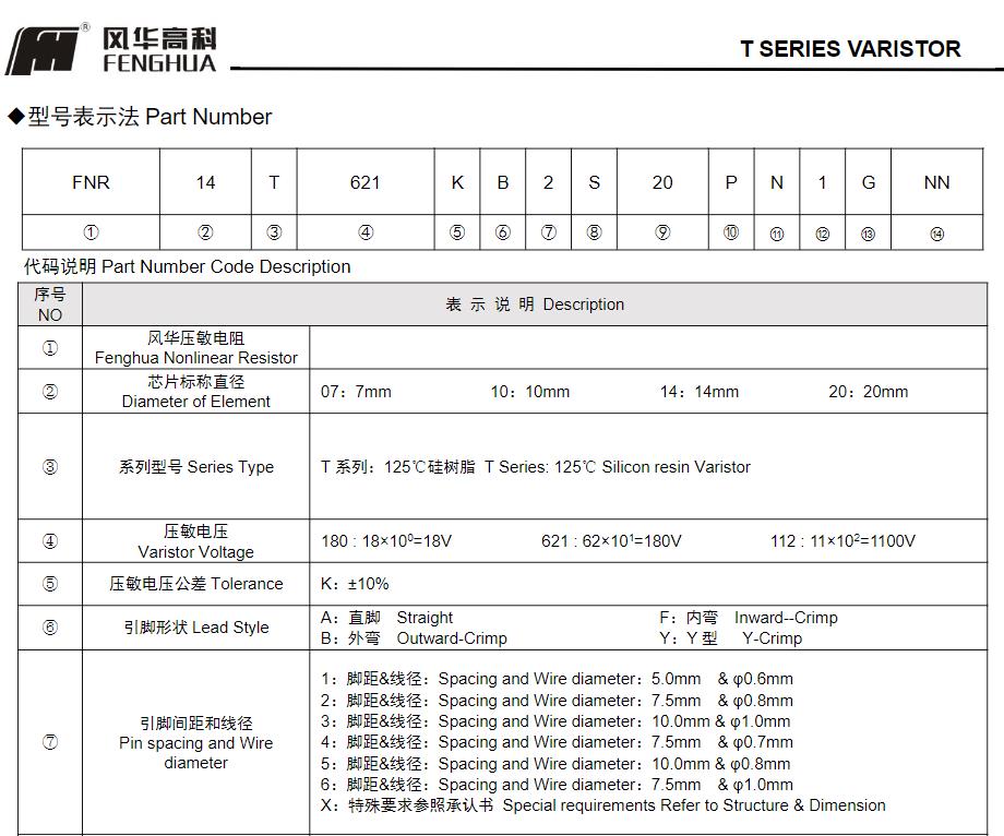 風華高科_壓敏電阻 _T系列壓敏電阻器