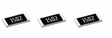 由四個數字組成,一般電阻的誤差±1%。前面三位是有效數字,第四位表示科學計數法中10的冪指數。例如1502,150是有效數字, 2表示10的二次方,如圖所示。基本單位是Ω,即:XXXY=XXX*,所以1502的阻值就是150×10的二次方=150×100=15000Ω=15KΩ。