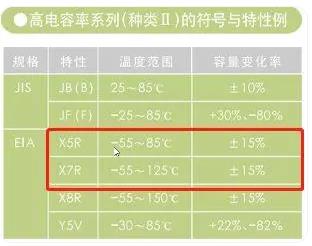 X5R電容的電容值變化范圍為±15%,而X7R電容的電容值變化范圍也為±15%。兩者在電容值的穩(wěn)定性上沒(méi)有什么顯著的區(qū)別。