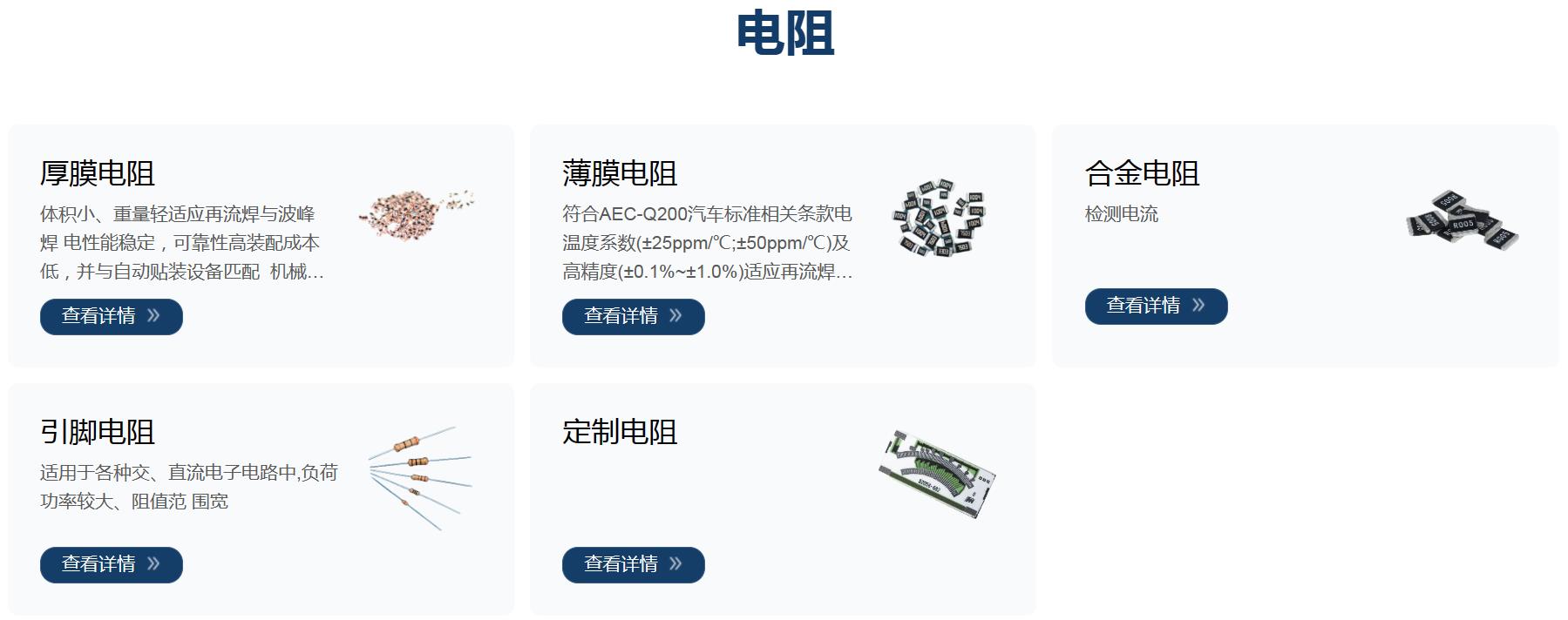 風華電阻種類有:厚膜電阻、薄膜電阻、定制電阻、熱敏電阻、壓敏電阻、合金電阻、色環電阻、厚膜網絡電阻及其他產品。