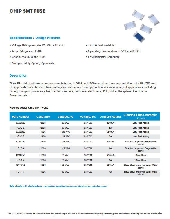 1、磚微型表面貼裝保險絲 2、薄型表面貼裝芯片保險絲 3、薄型SMD可復(fù)位器件 4、徑向PTC自恢復(fù)設(shè)備 5、250/277/350伏徑向保險絲 6、預(yù)制600V徑向保險絲 7、微型軸向引線保險絲 8、玻璃和陶瓷保險絲