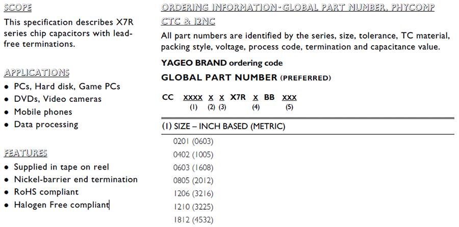 產品封裝:0201/0402/0603/0805/1206/1210/1812