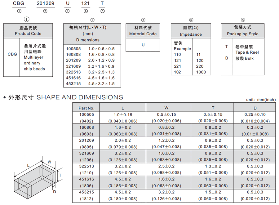 風(fēng)華磁珠: CBG 201209 U 121 T