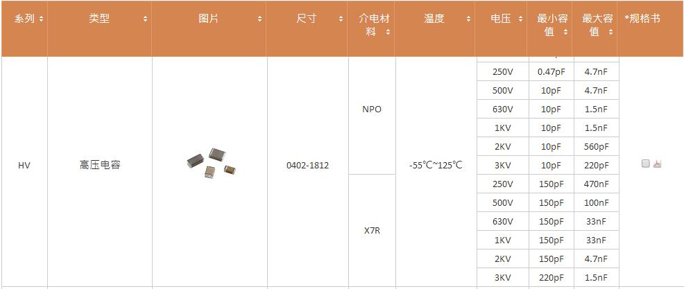 國巨的高壓電容參數: