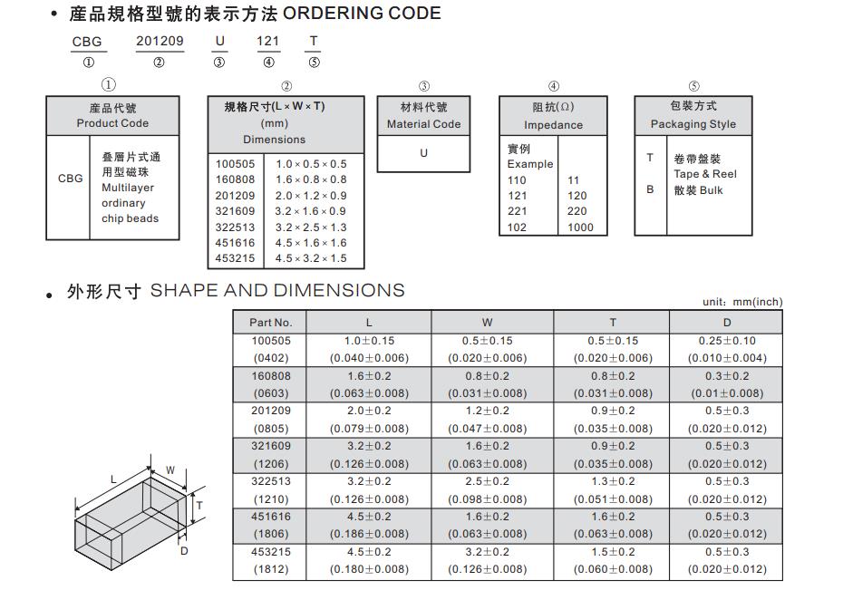 華科貼片磁珠命名規(guī)則對照表