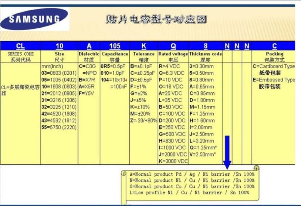 三星貼片電容耐壓值代碼