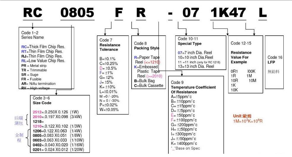 國巨貼片電阻命名規(guī)則對照表