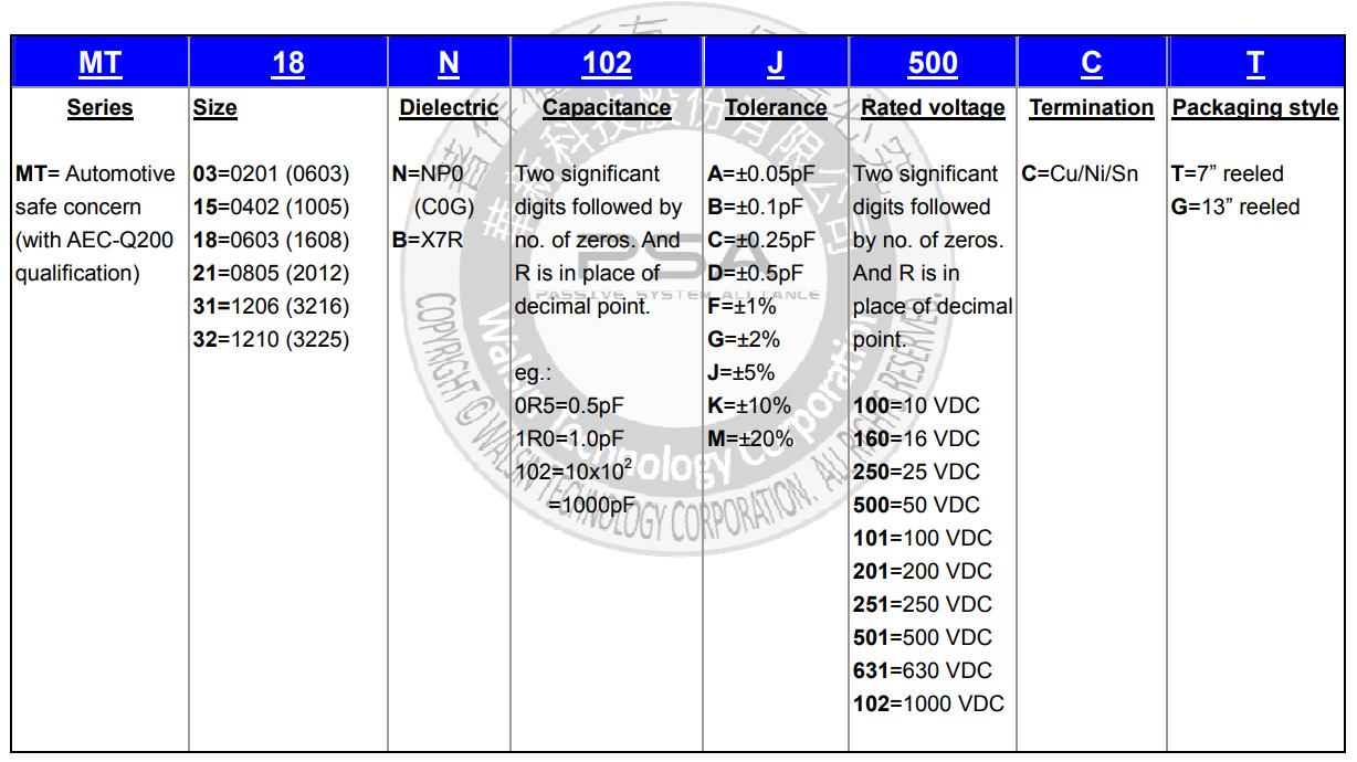華科車規電容命名規則對照表